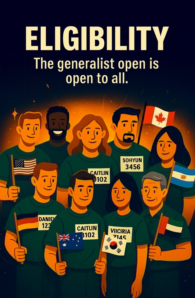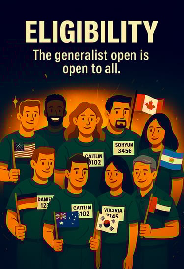 The Generalist Open Tournament is the world’s premier competition for individuals who excel across a diverse range of skills and disciplines. Scheduled for December 2027, this event invites participants over the age of 21 who are fluent in English and have a clean legal record.