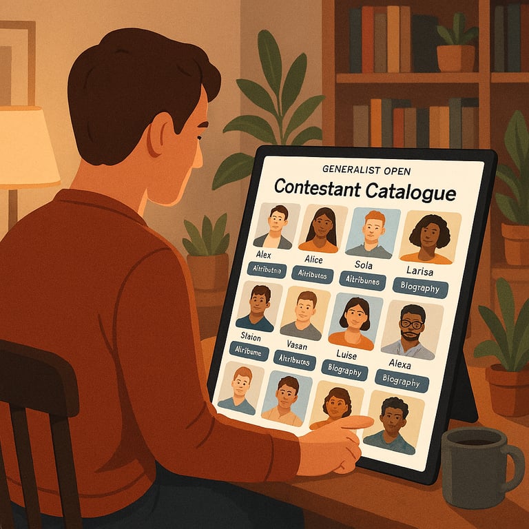 Investors select Contestants from the Contestant Catalogue to Sponsor and put onto ones Squad